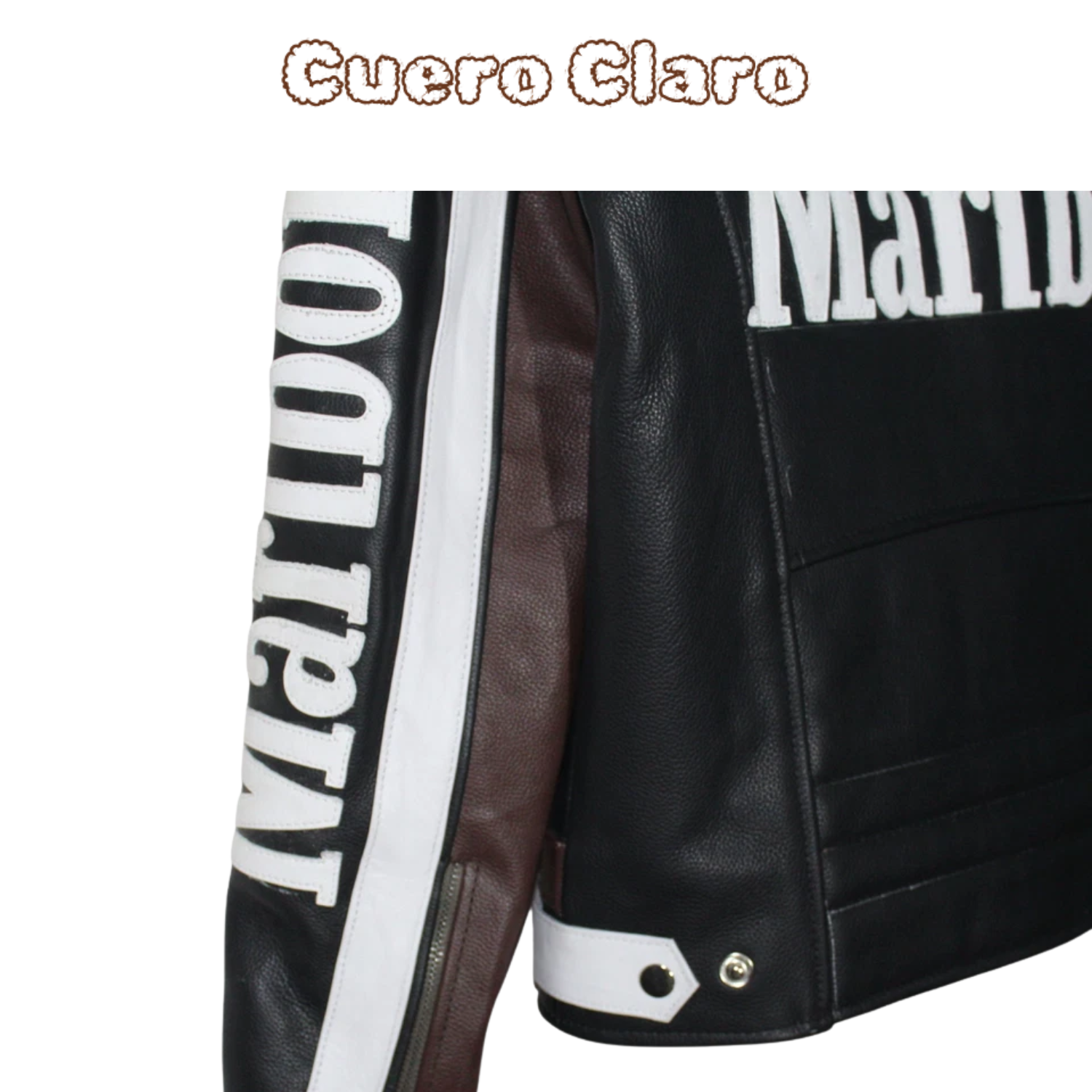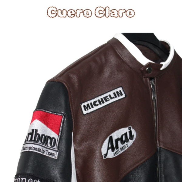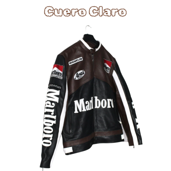 - Design: Classic racing jacket with Marlboro, Michelin, and Arai logo patches
